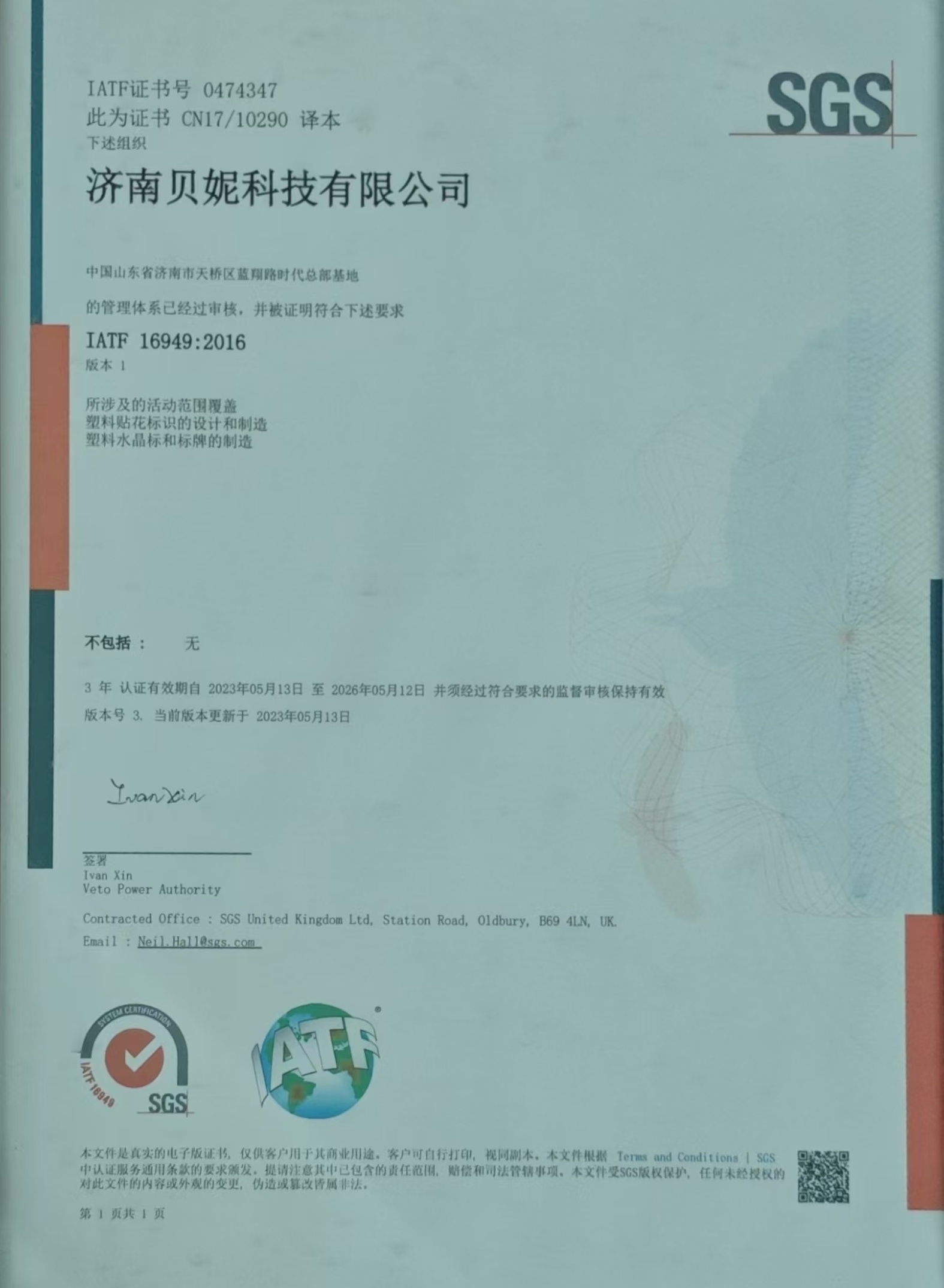 济南贝妮科技有限公司专业生产各种车辆、机械、电器用标识、贴花、标牌、铭牌,以及城市与道路交通标志和户外耐候性广告品等。产品广泛应用于国内外各类工程机械、高空作业平台、农业装备、汽车、摩托车、机电设备行业,同时也是广告宣传、文化传播、安全警示等特需行业的重要合作伙伴。